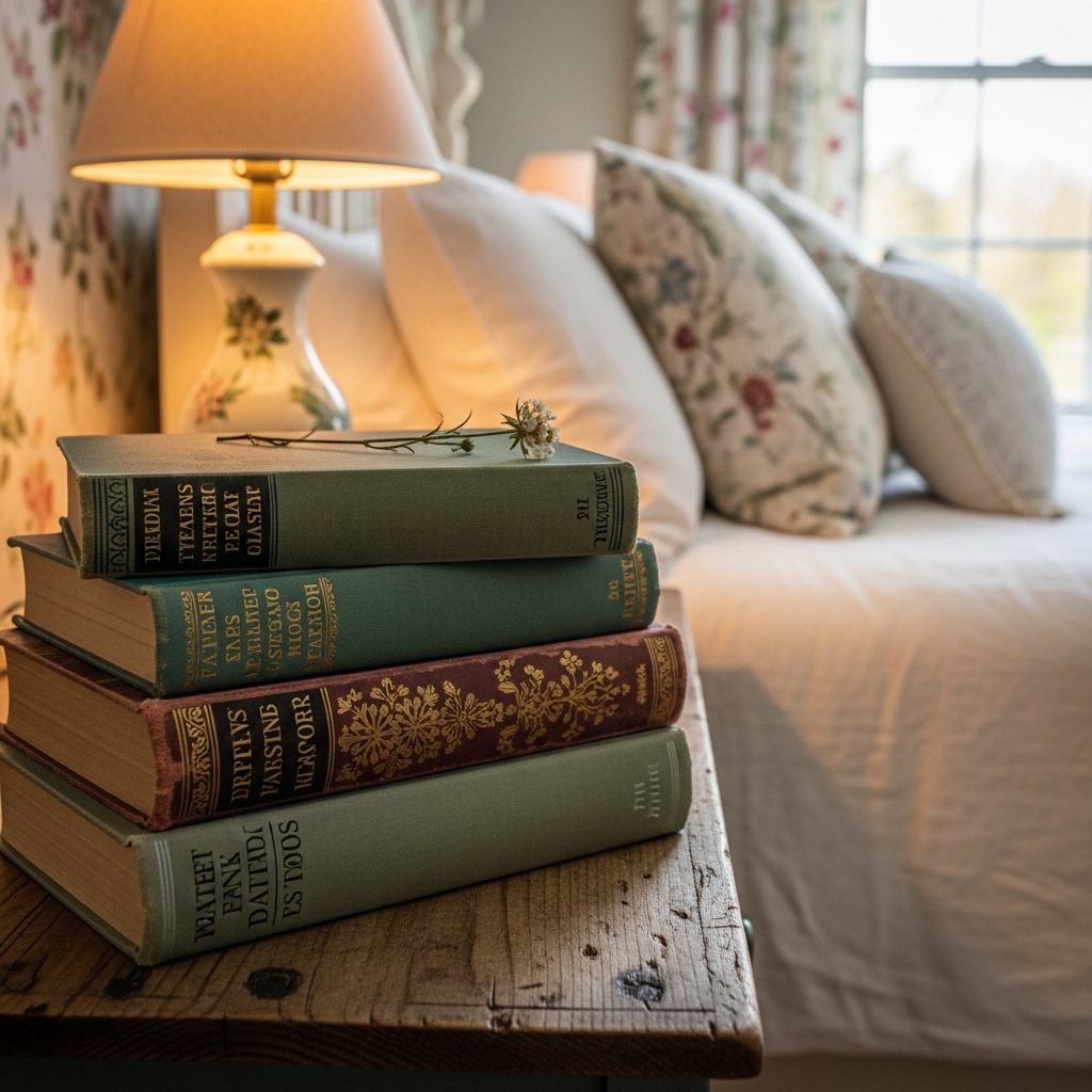 16. Place a Stack of Vintage Books on the Nightstand
