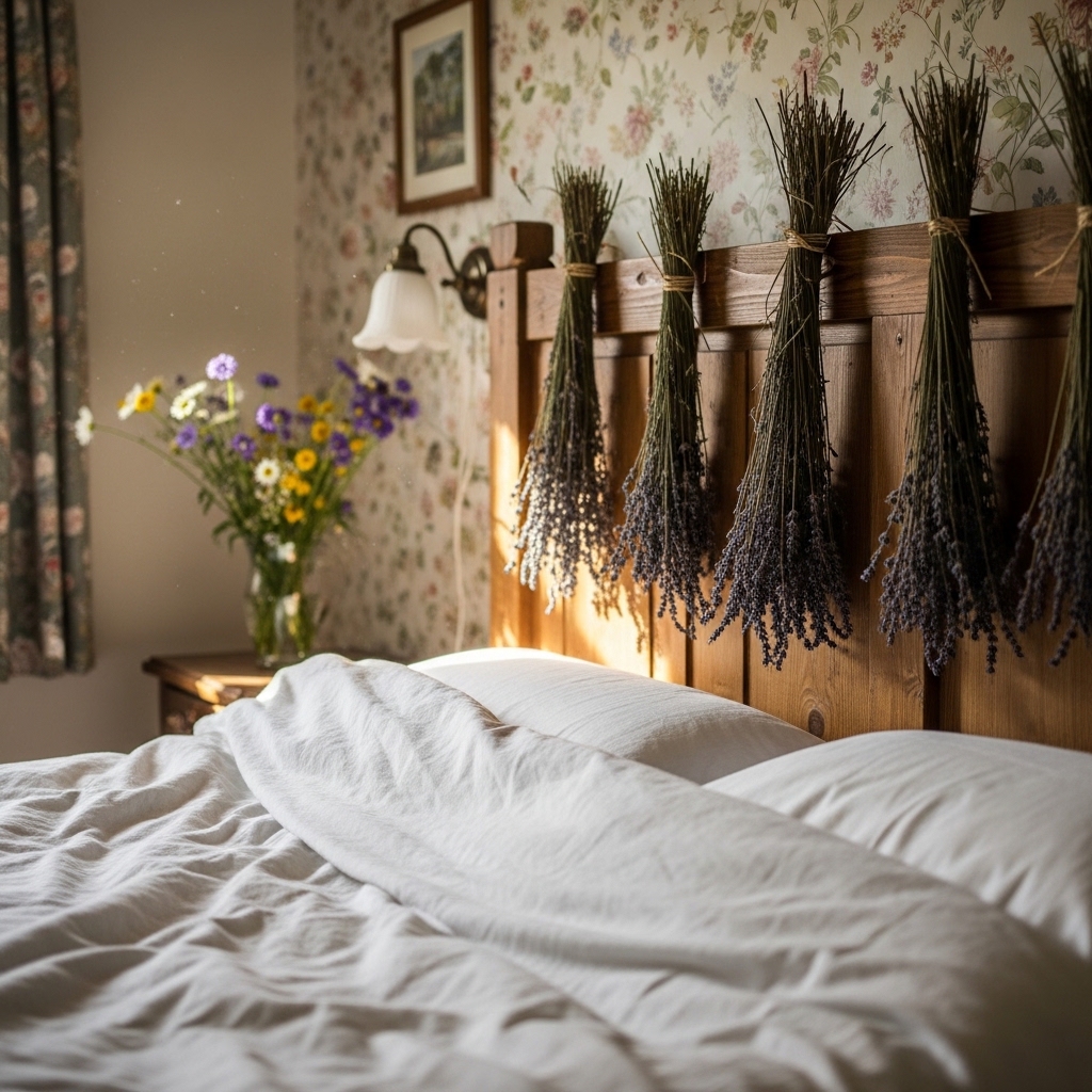 3. Hang Dried Lavender Bundles from the Headboard