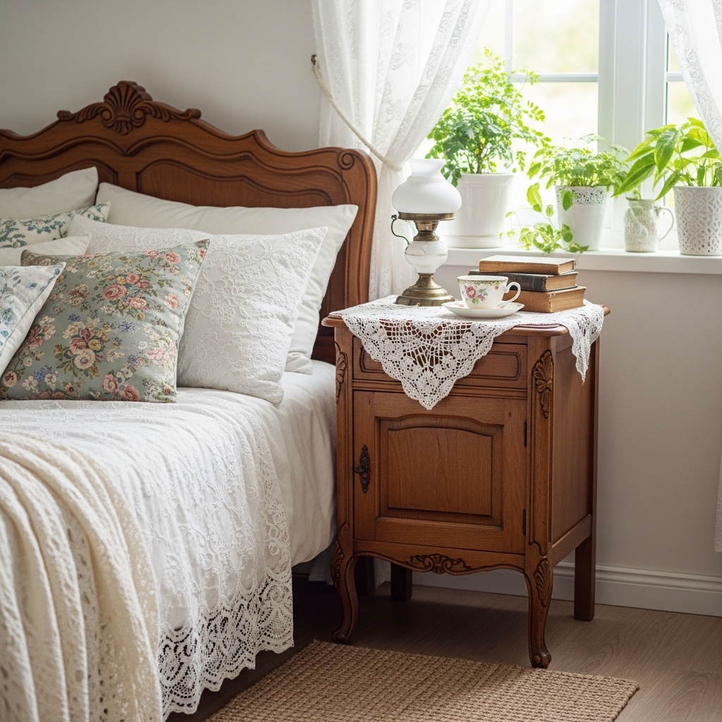 4. Place a Vintage Nightstand with a Doily