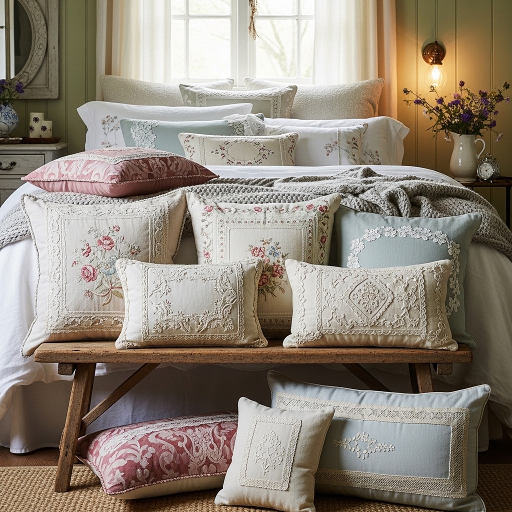 9. Display a Collection of Vintage Pillows