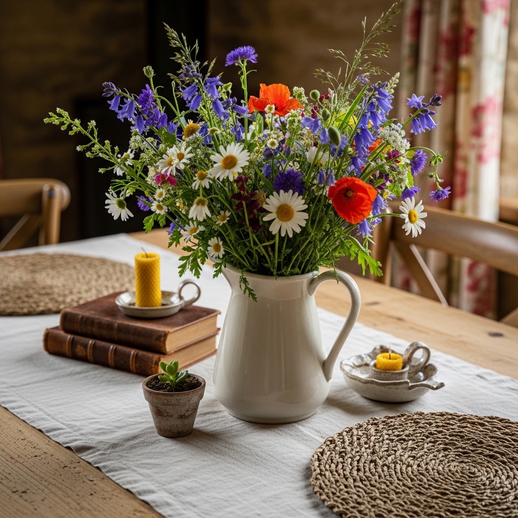 7. Place a Pitcher of Wildflowers on the Table