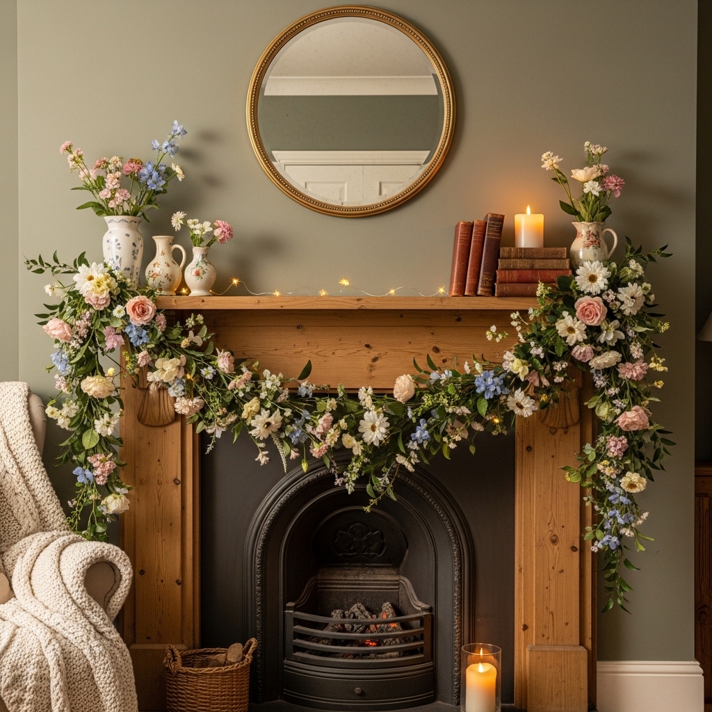 15. Hang a Floral Garland Across the Mantel