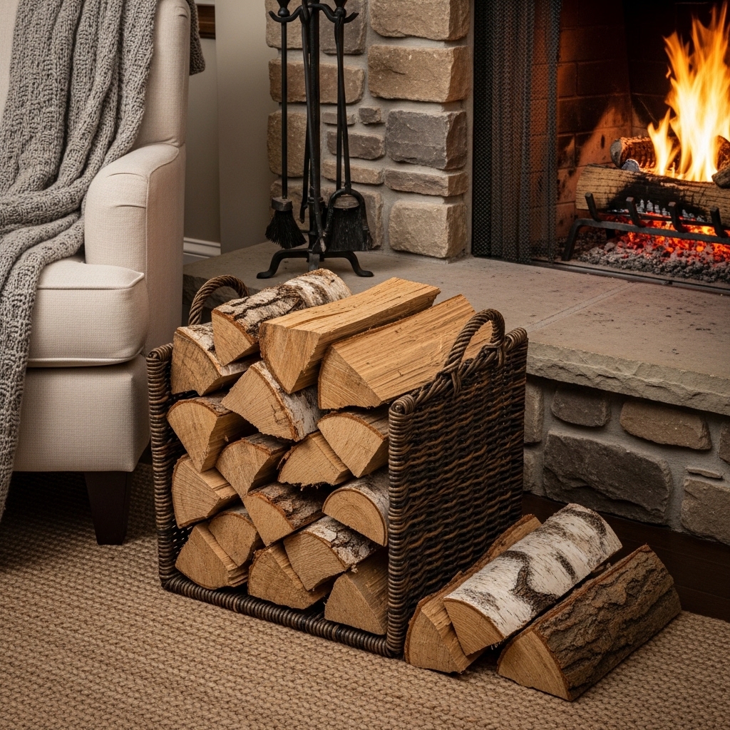 Pro Tip: Use a basket with a lid. The lid hides the logs when not in use.