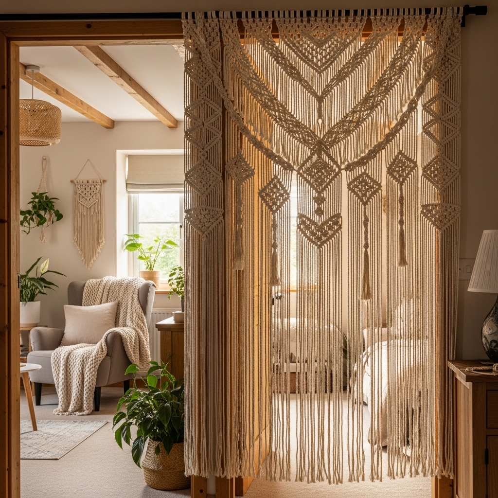 Mistake to Avoid: Do not use a plastic curtain. Macrame is warmer.