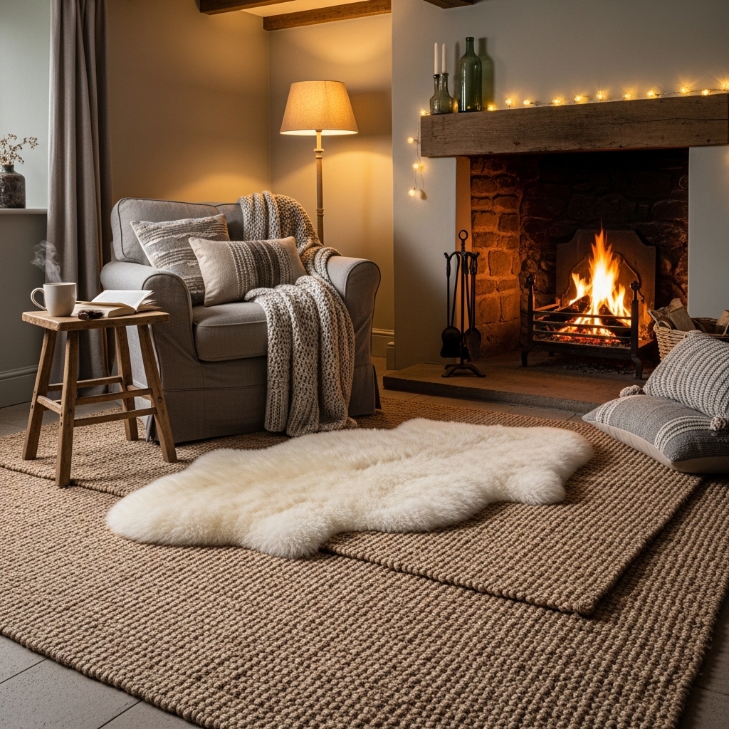 1. Layer a Sheepskin Rug Over a Jute Rug