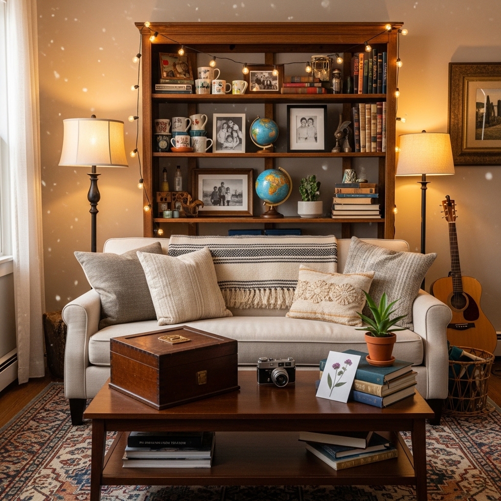 Why it works: Personal items add identity, warmth, and storytelling to the room.