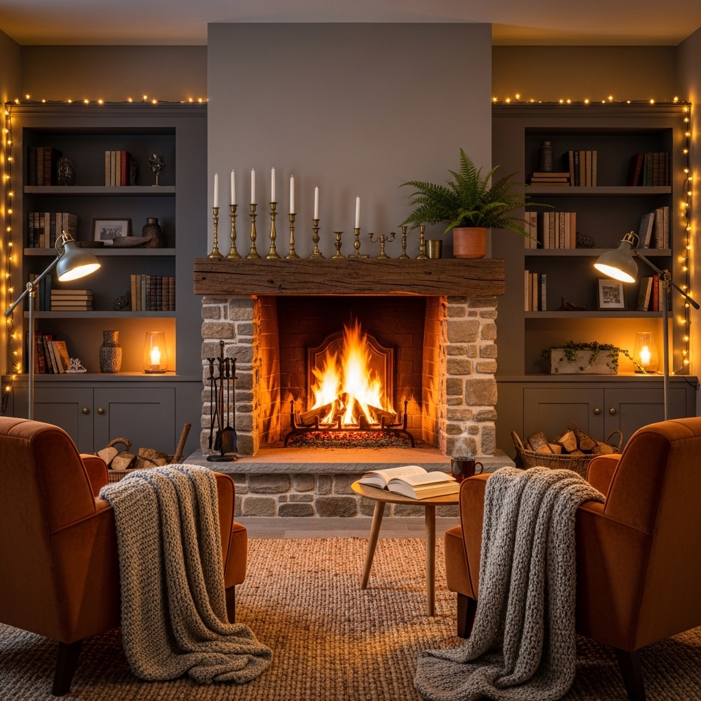 Install a functional or decorative fireplace to create warmth and atmosphere. Even electric fireplaces add ambient light and heat.