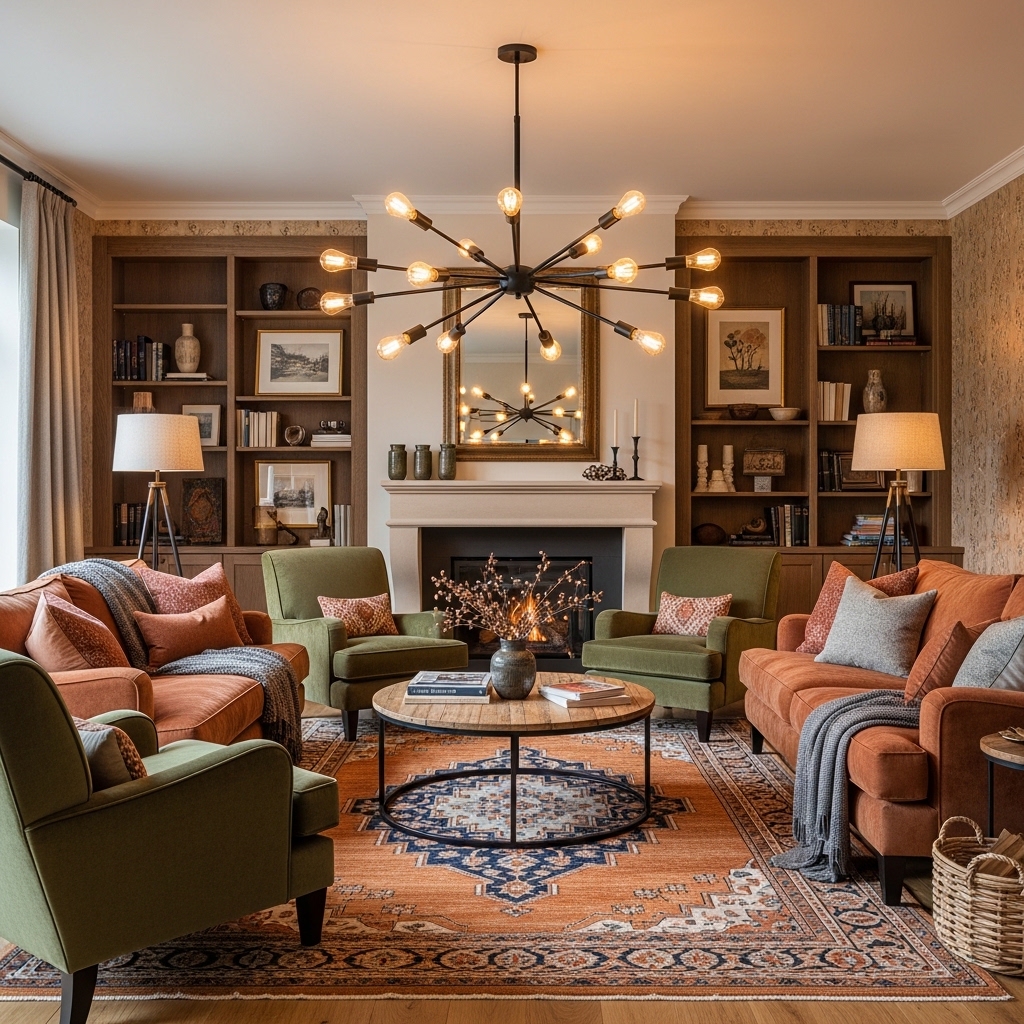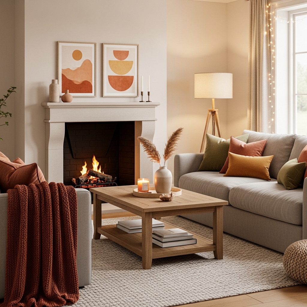 How to apply: Use warm-toned pillows, throws, rugs, or artwork. Keep furniture neutral for longevity and flexibility.