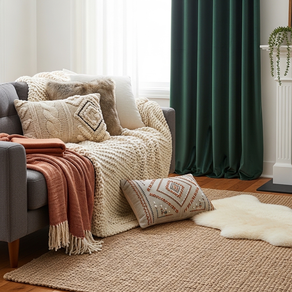 Budget alternative: Thrifted throws, DIY cushion covers, or faux fur rugs provide texture affordably.