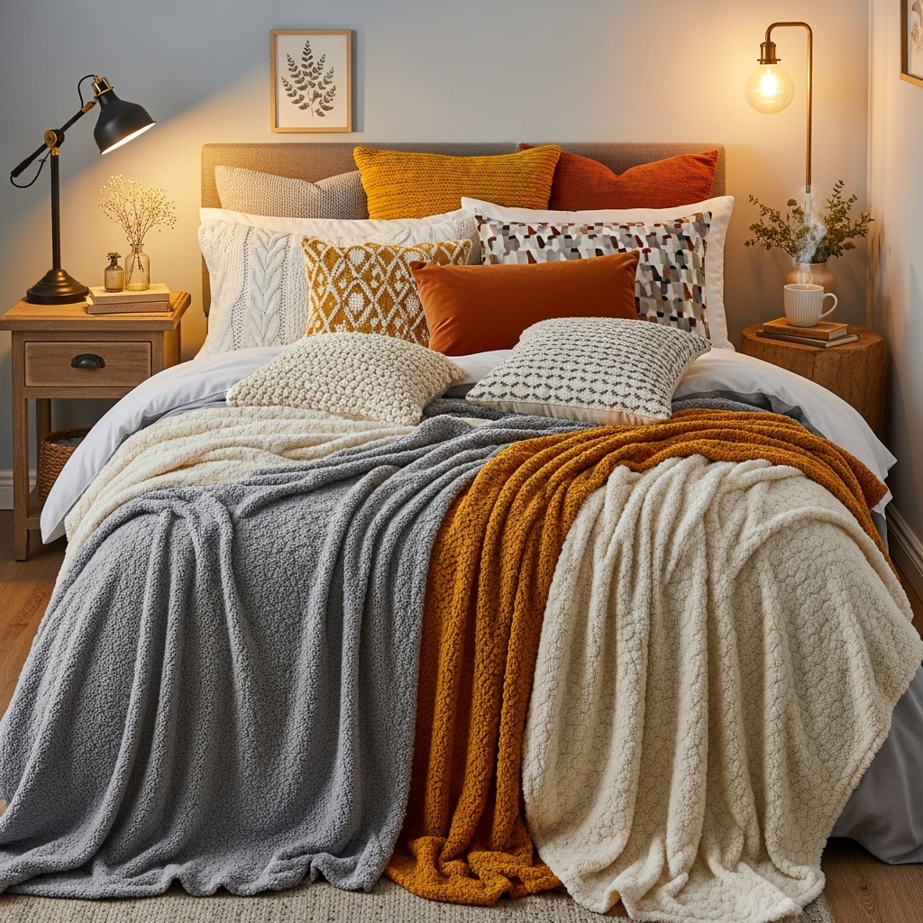 Throw blankets and decorative pillows are simple ways to enhance bedroom comfort. Layering a few pillows with different textures can add visual interest.