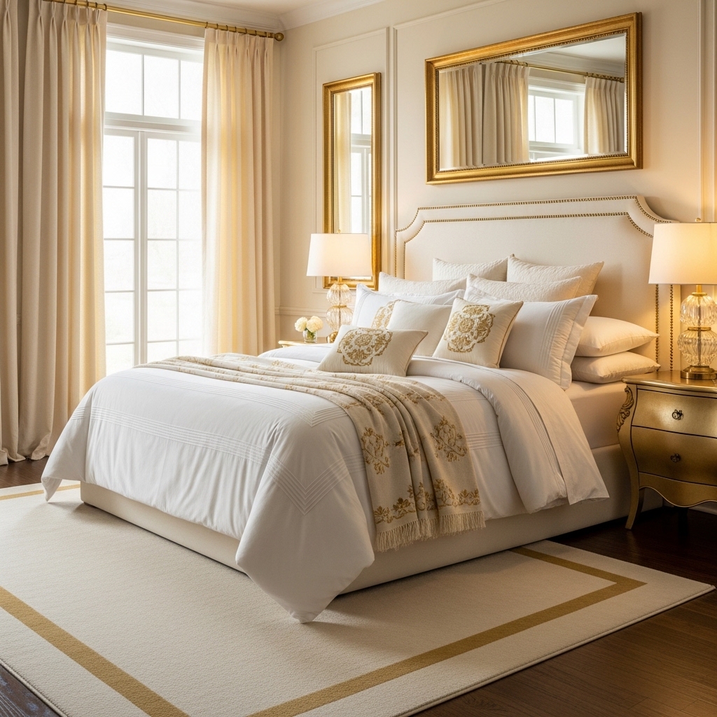 Layering cream bedding with gold-toned cushions or throws adds depth and visual interest. This creates a cohesive and inviting bed setup.