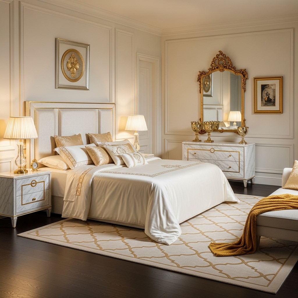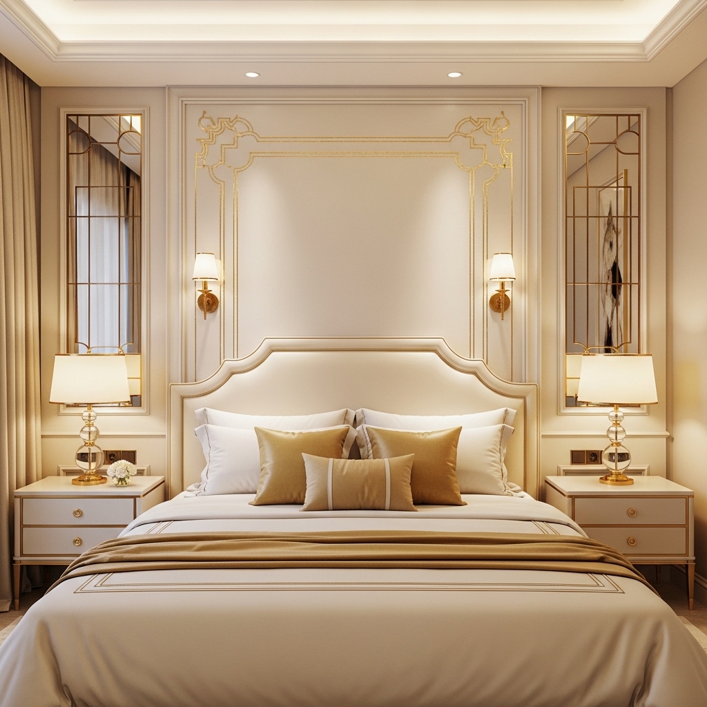 It works perfectly in luxury bedroom design ideas. The neutral tone keeps the space calm while gold accents add sophistication.