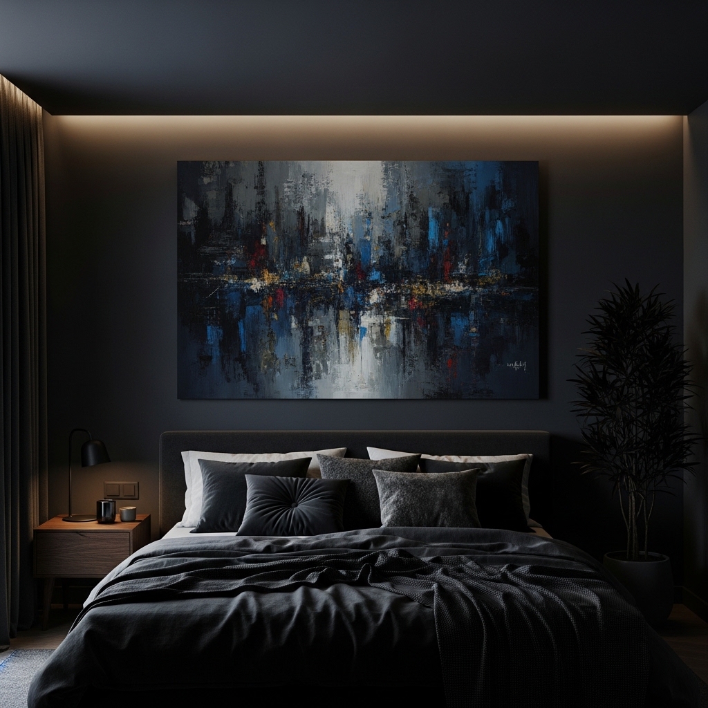 Artwork featuring dark tones or dramatic themes enhances the overall aesthetic of the room. It adds personality while staying consistent with the color palette.