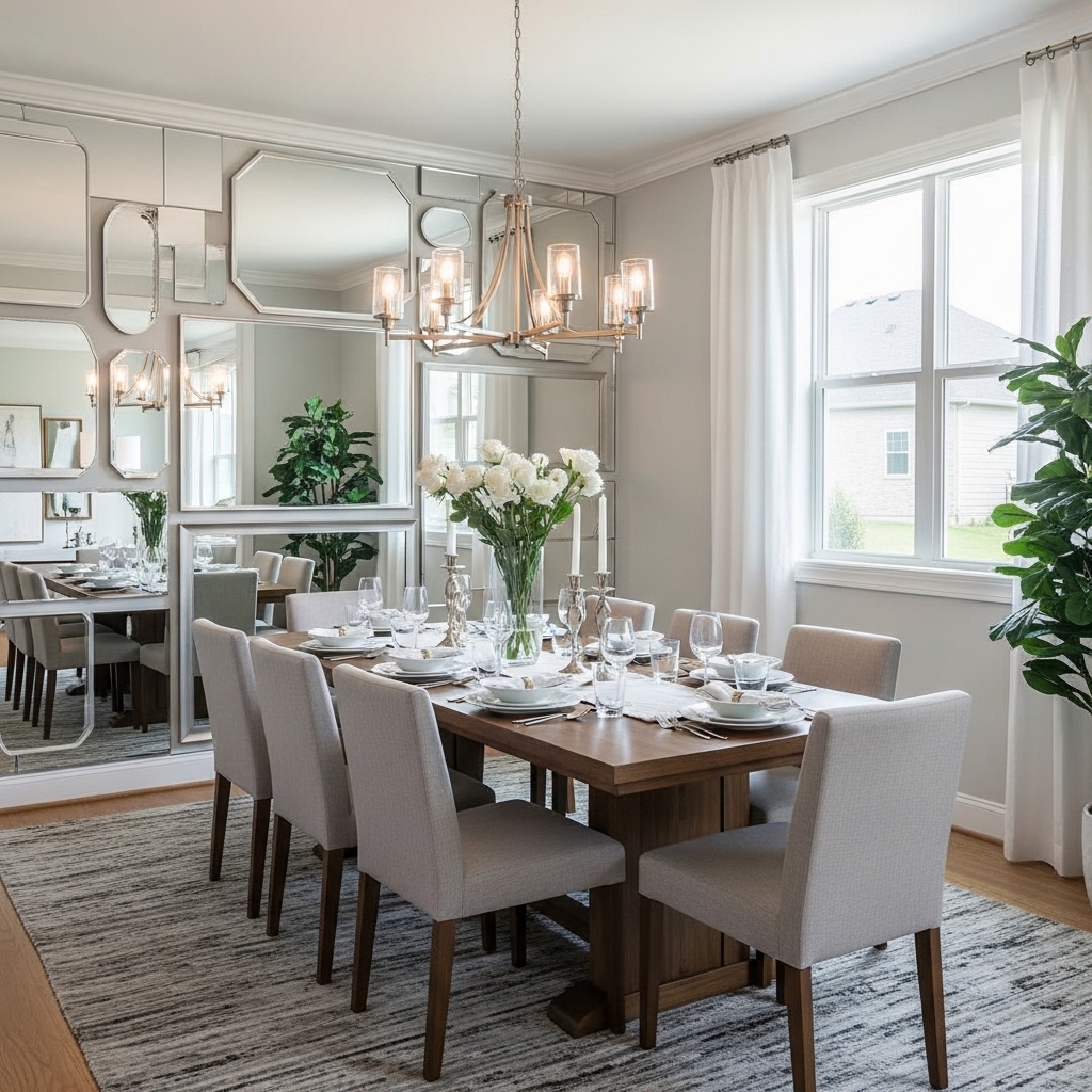 This works because mirrors create the illusion of depth and brightness, making small dining areas feel larger and more open.