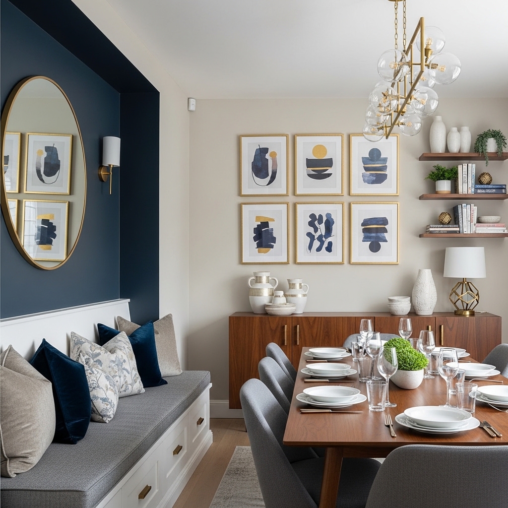 The most effective dining room wall ideas focus on scale, placement, lighting interaction, and how decor connects with the table and seating layout. Whether you’re working with a small dining nook or a formal dining area, these ideas help you design walls that feel intentional, functional, and visually cohesive.