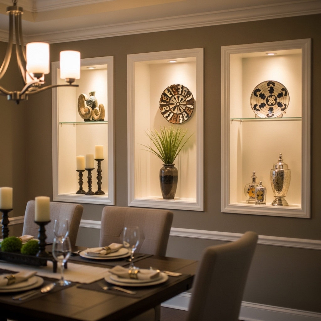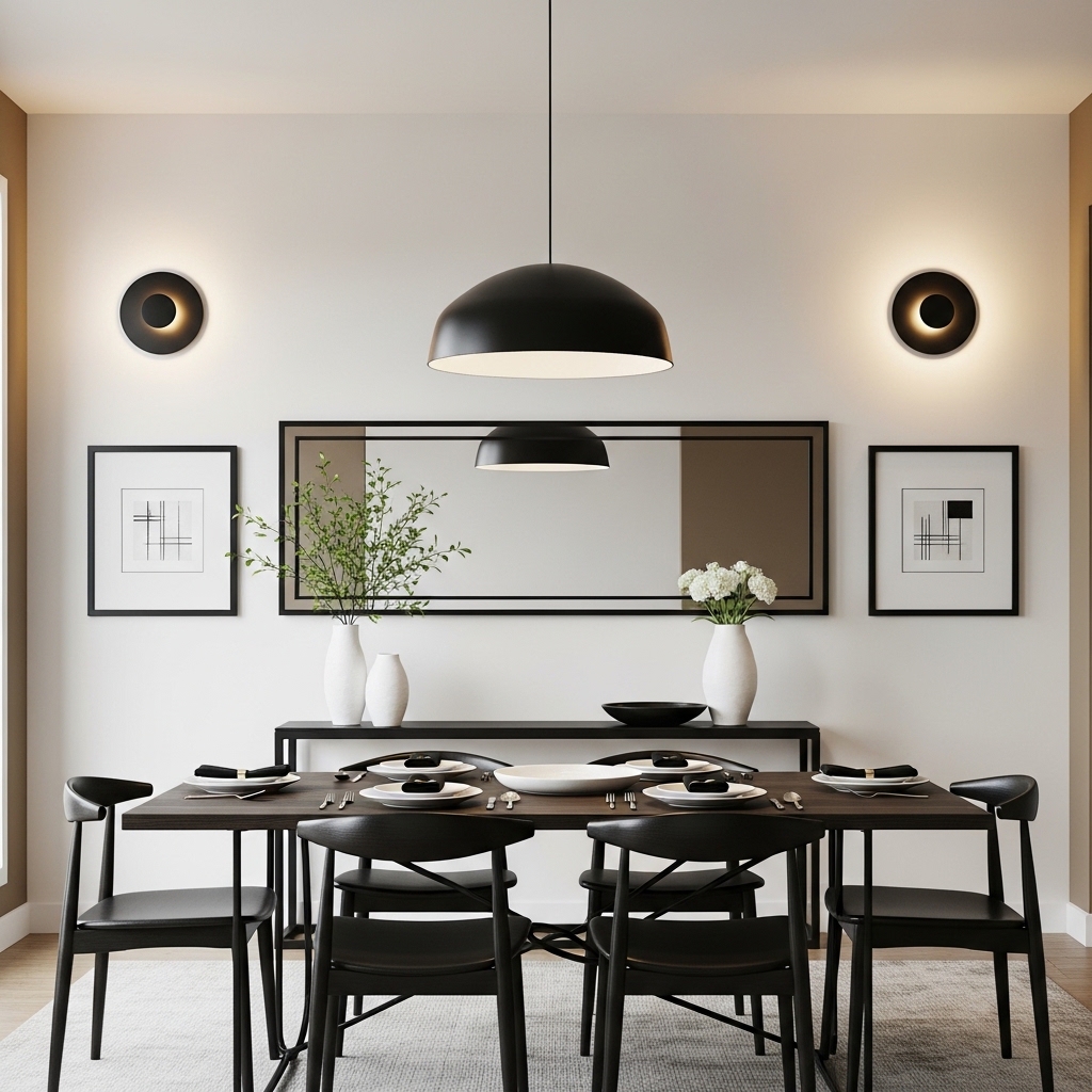 Add wood panels, fabric panels, or subtle 3D textures to one wall, typically behind the dining table. Keep colors neutral for versatility.