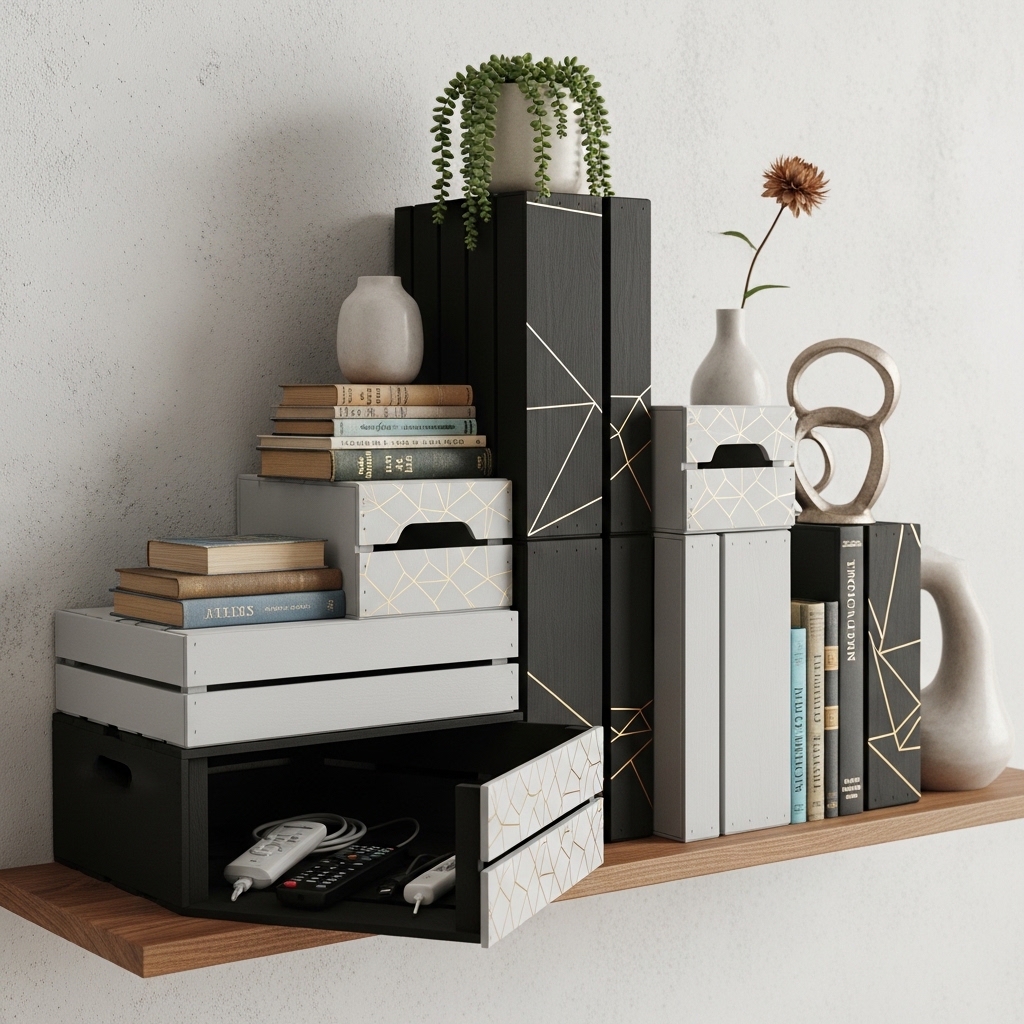 17. DIY Shelf Styling Boxes for Hidden Storage