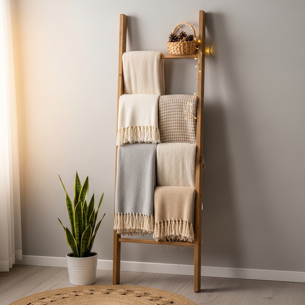 14. Simple Wooden Ladder for Blanket Display