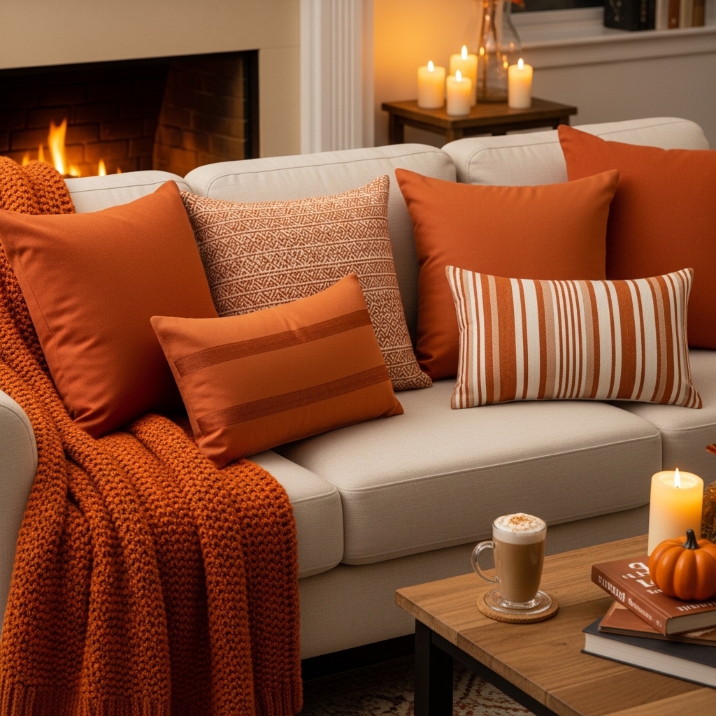 1. Swap White Pillows for Burnt Orange
