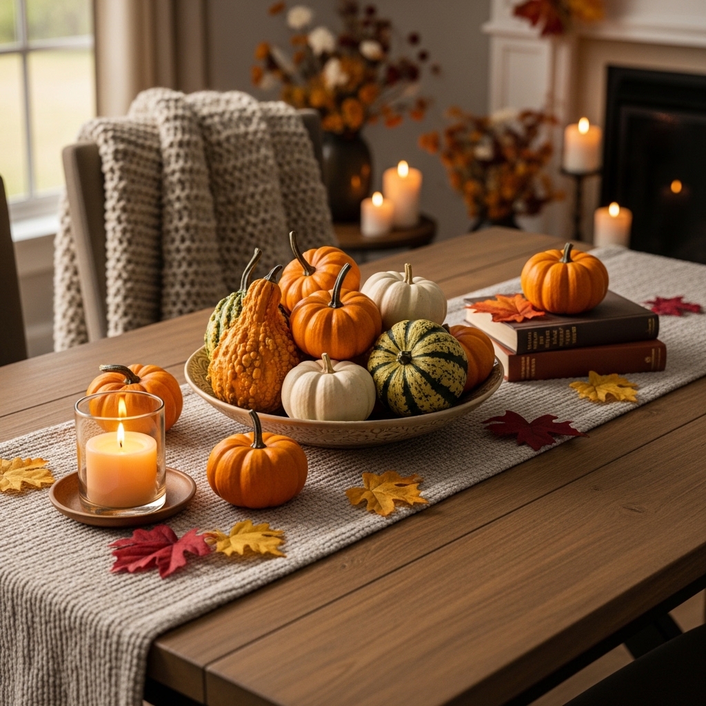 3. Place a Bowl of Mini Pumpkins on the Table