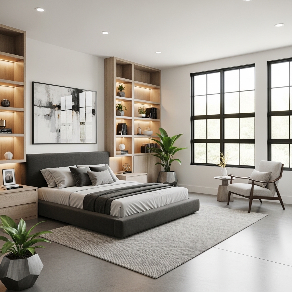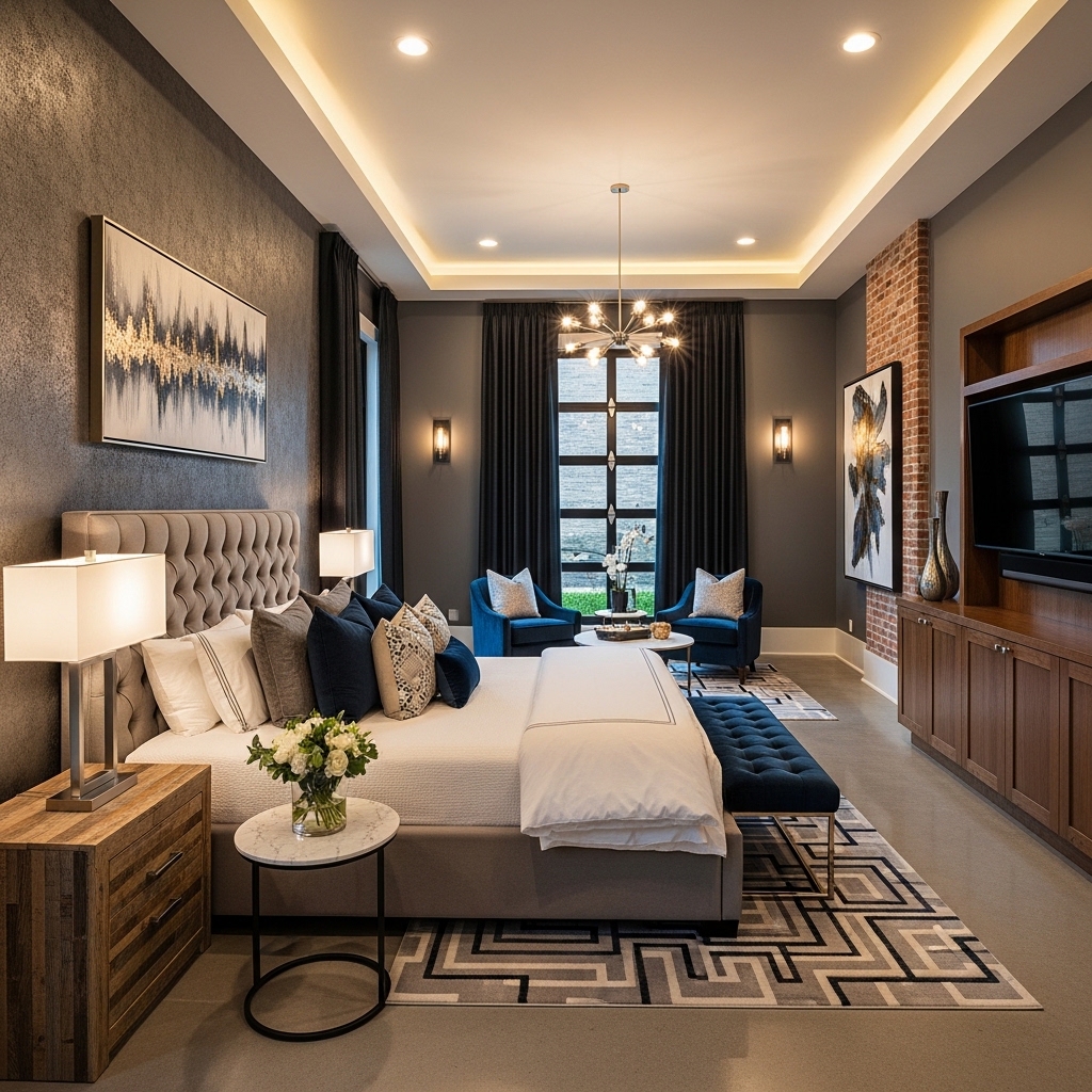 Pro Tip: Use layered lighting with bedside lamps, ceiling lights, and accent lighting for a hotel-style atmosphere.