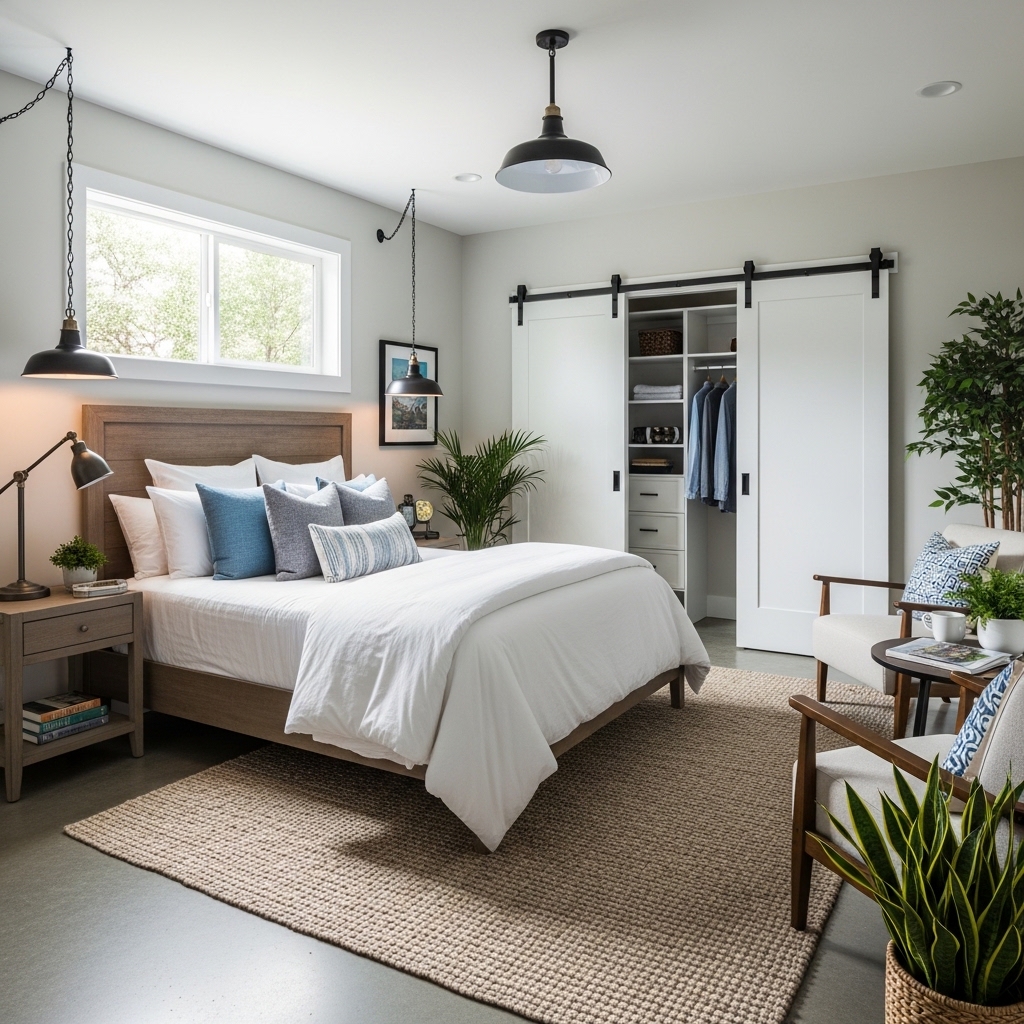 This style is especially effective in garage conversions because it helps brighten spaces with limited natural light.