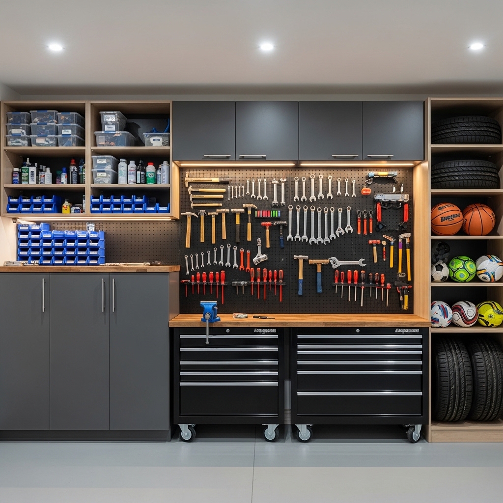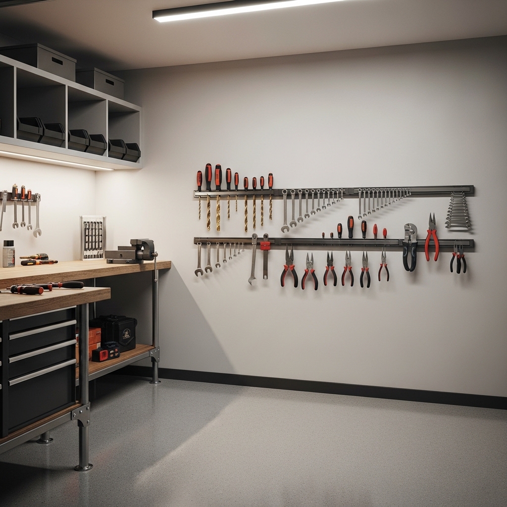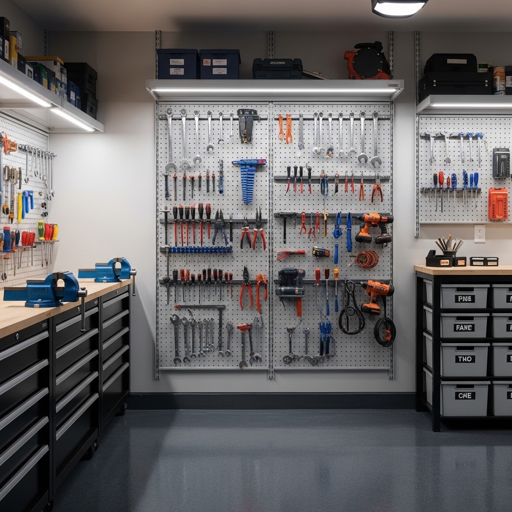 Install pegboards or vertical racks to store tools based on size and usage. Keep frequently used tools at eye level for easy access.