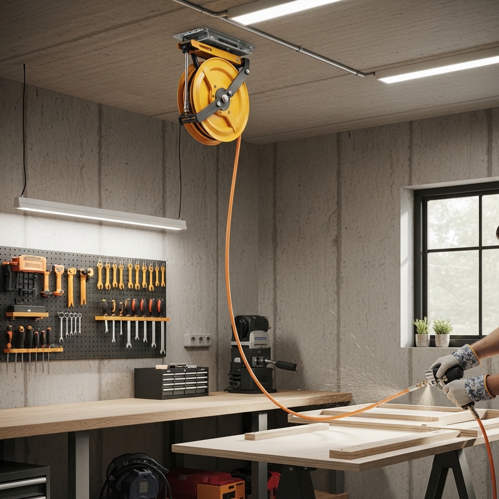8. Install a Ceiling-Mounted Retractable Air Hose Reel