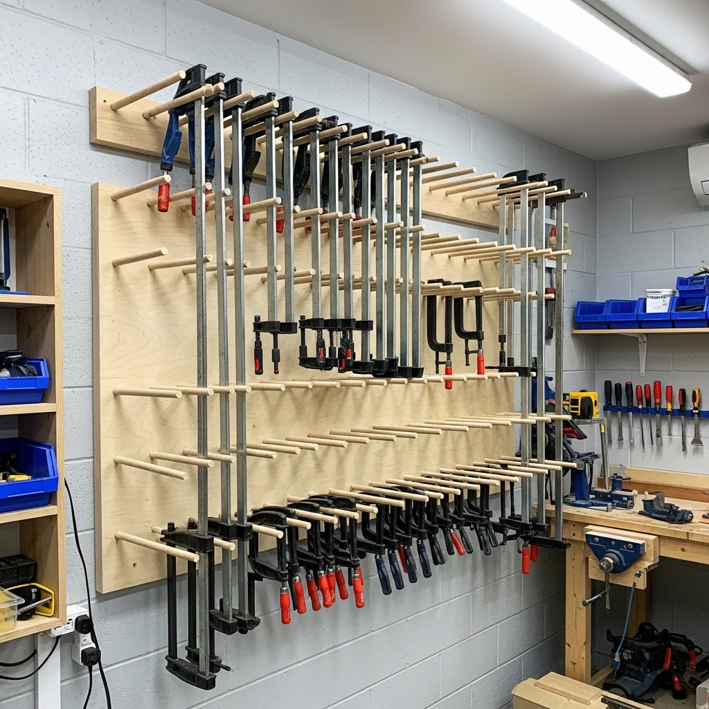7. Build a Wall-Mounted Clamp Rack with Pegs