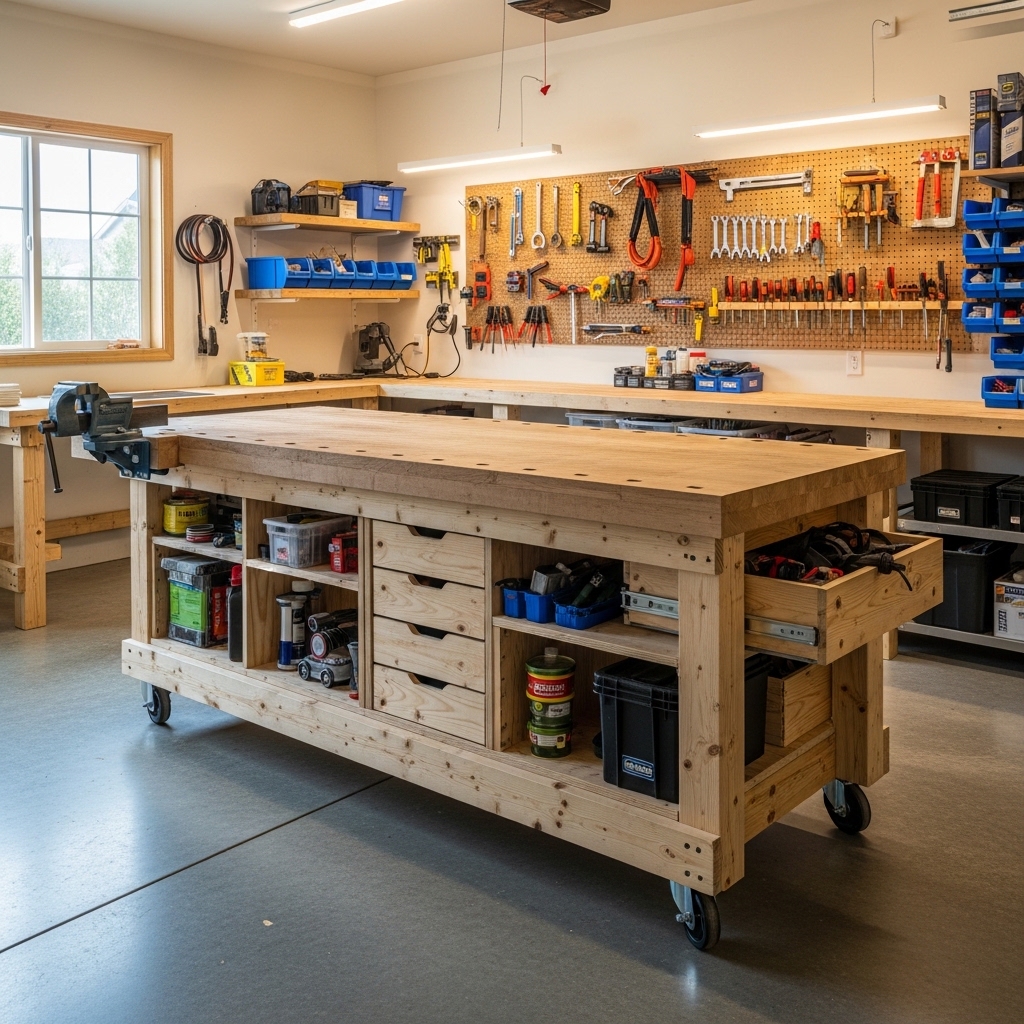 Pro Tip: Use casters where each wheel locks independently. Locked wheels prevent bench movement during heavy hammering or planing.