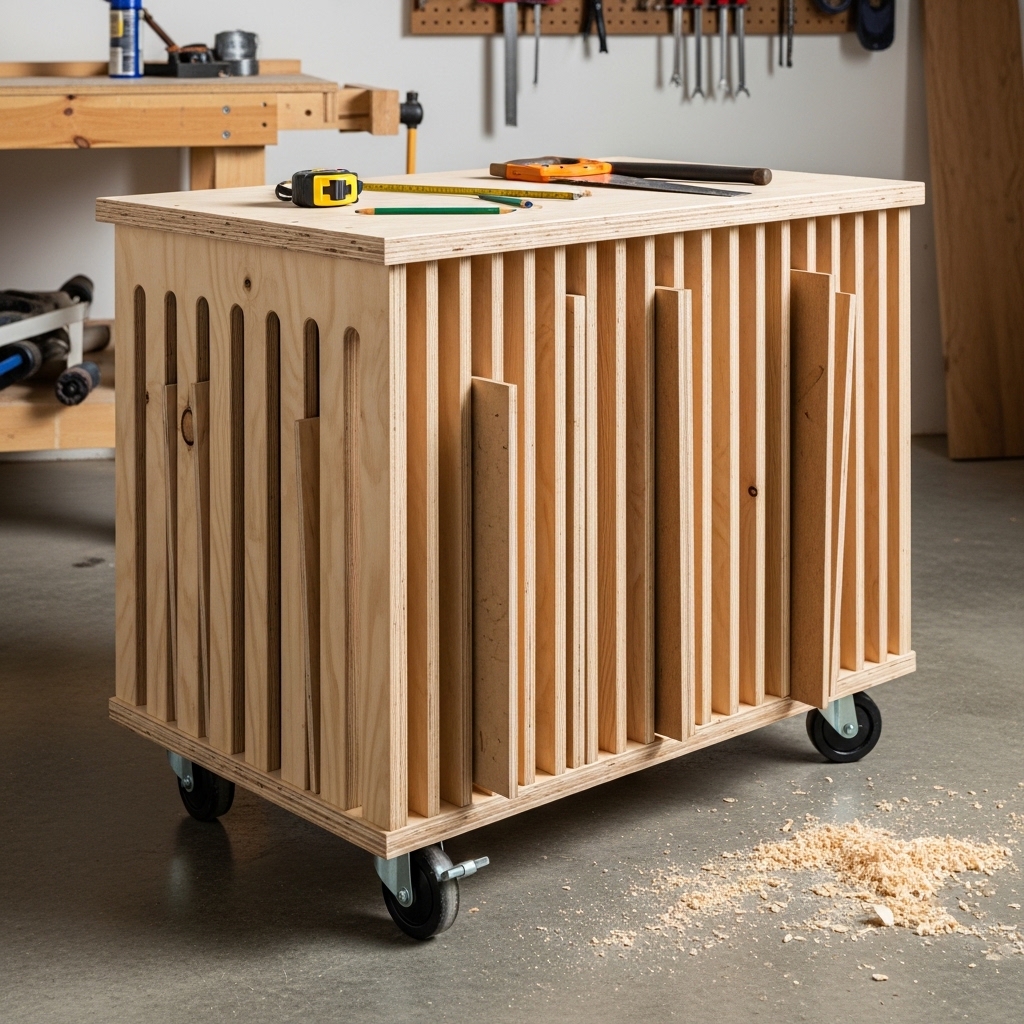 12. Build a Rolling Plywood Cart with Vertical Slots