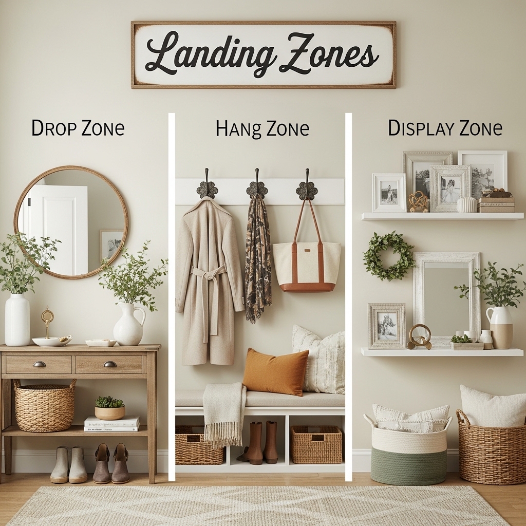 Landing zones are designated spots for daily items that tend to accumulate anywhere.
