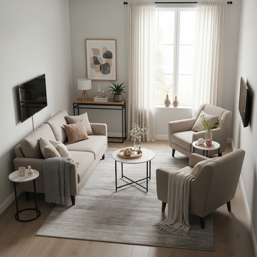 Before diving into specific layouts, understand the rules that apply to every small living room.
