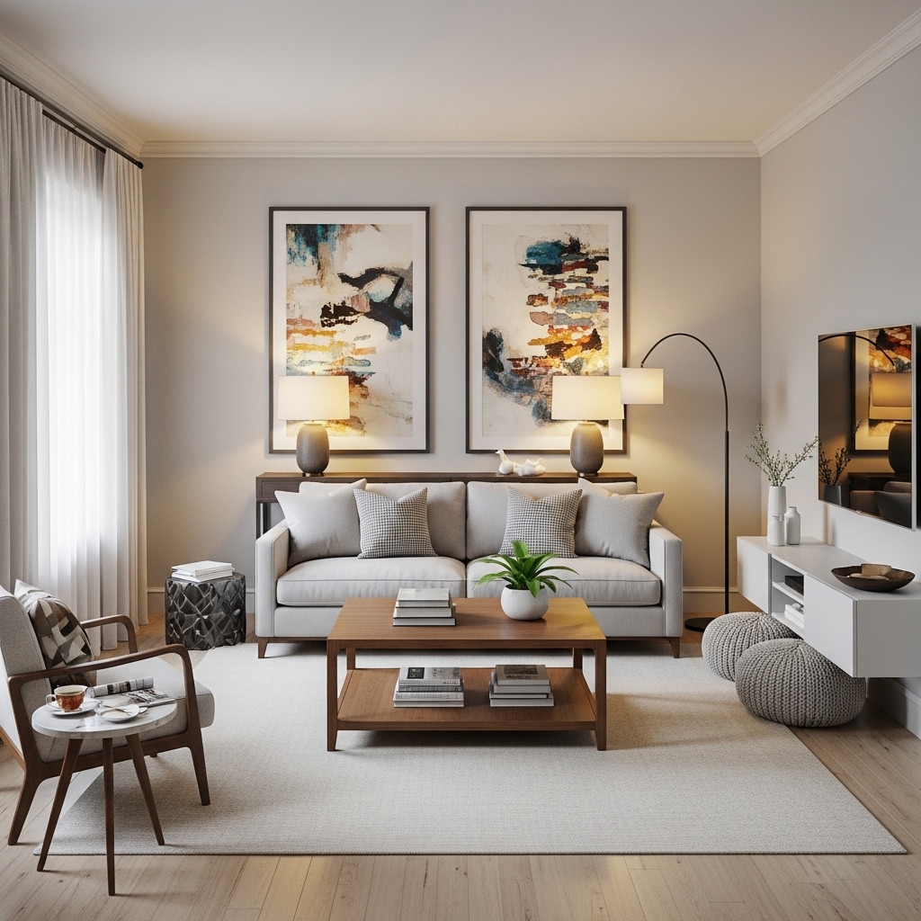 The rule: Pull furniture 6-12 inches away from walls. Even a small gap creates visual depth. The room feels larger.