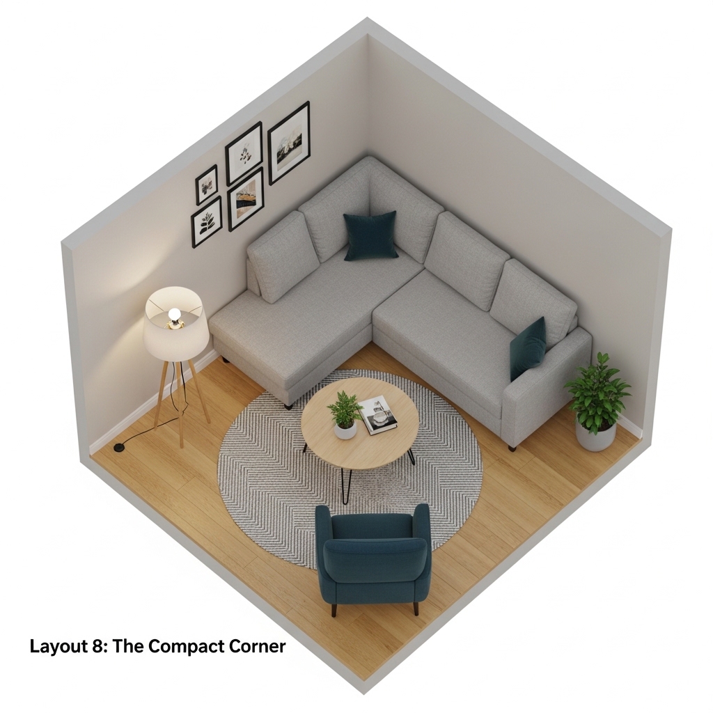 Mistake to Avoid: Do not add more furniture. The compact corner layout works because it uses minimal pieces.