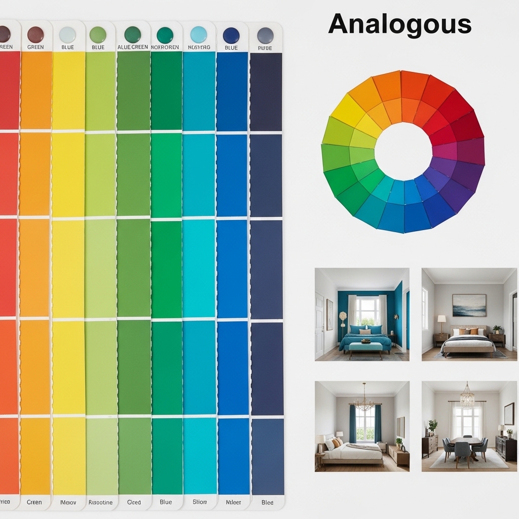 | Analogous | Colors next to each other on the color wheel | Medium rooms, harmonious spaces | Relaxed, natural, comfortable |