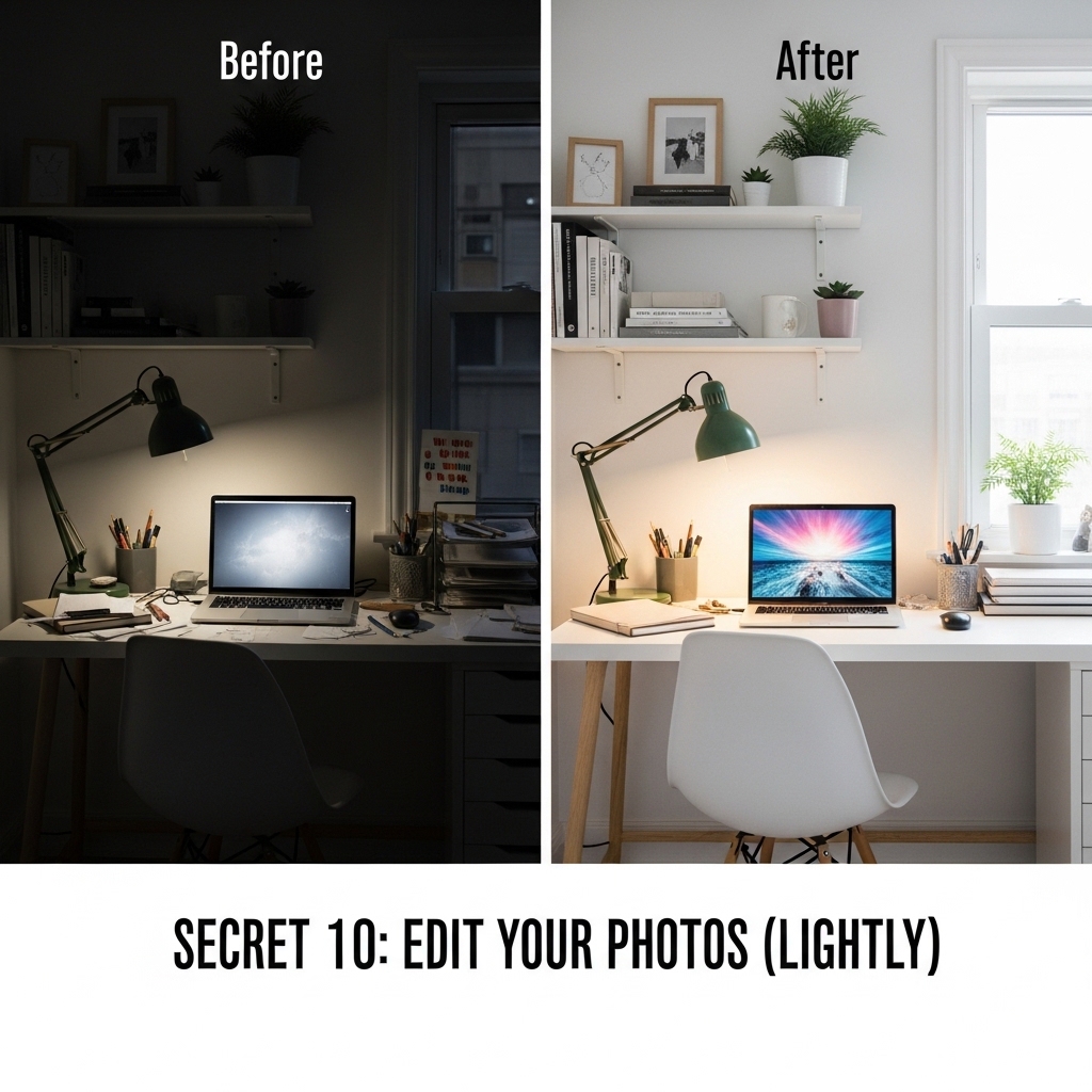 Mistake to Avoid: Do not over-edit. Over-edited photos look fake. The goal is to look like a beautiful version of your actual home.