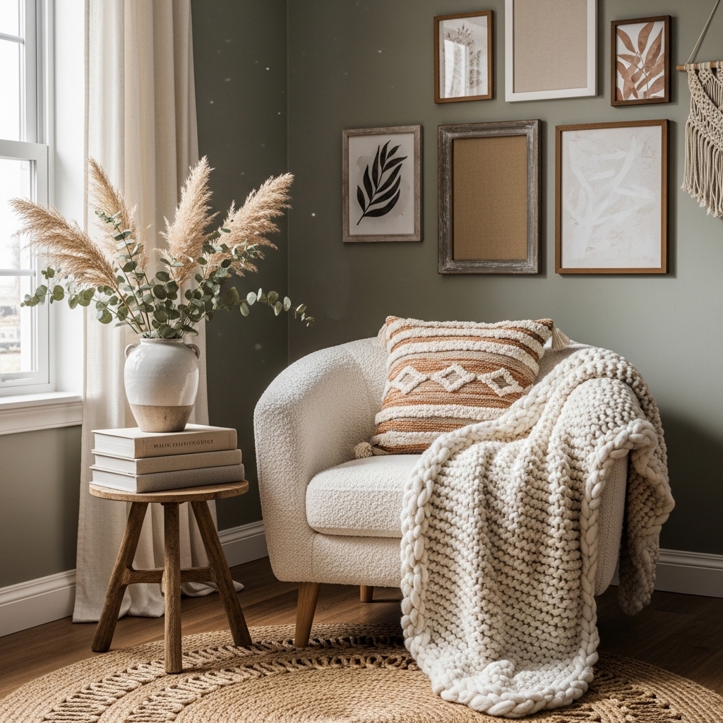 The photo rule: Layer textures. A wool throw on a linen sofa. A velvet pillow on a cotton chair. A jute rug under a wood coffee table.