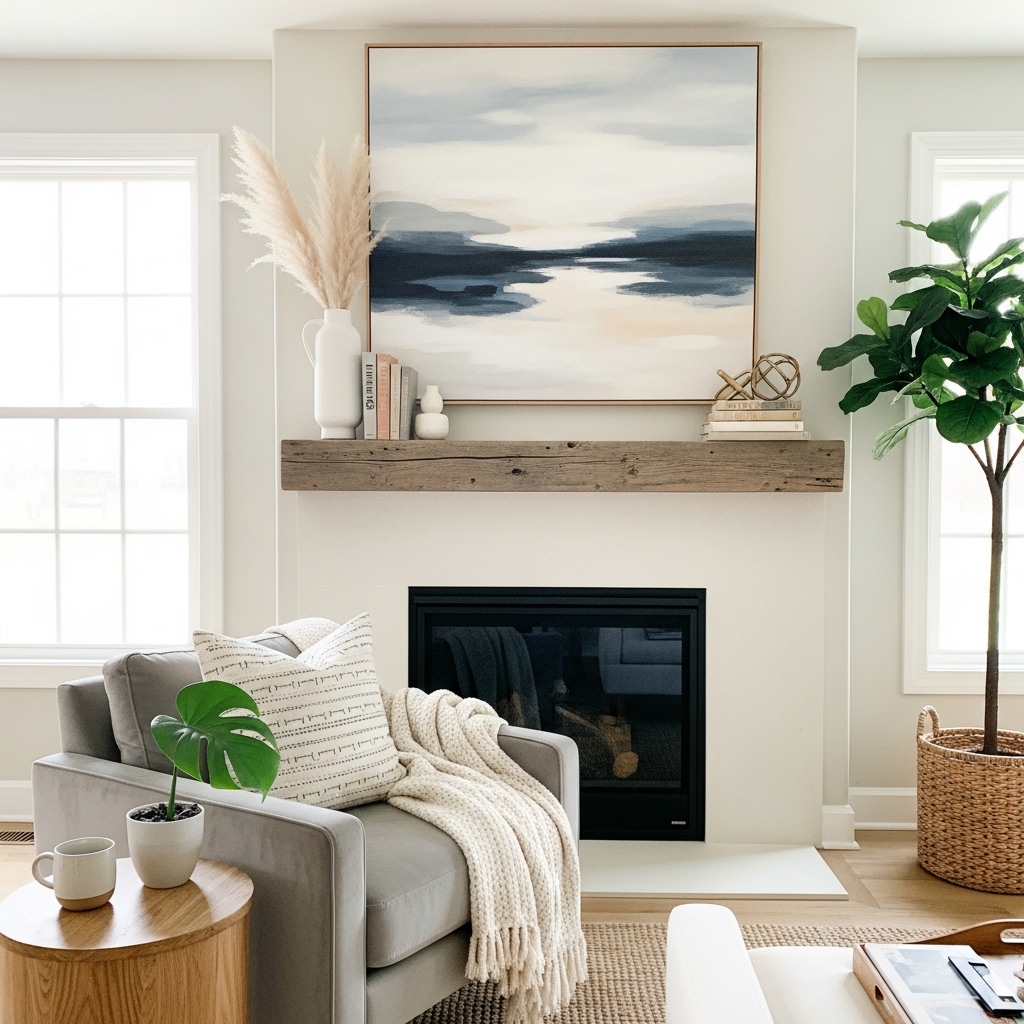 • Fireplace: Add a mirror above and decor on the mantel