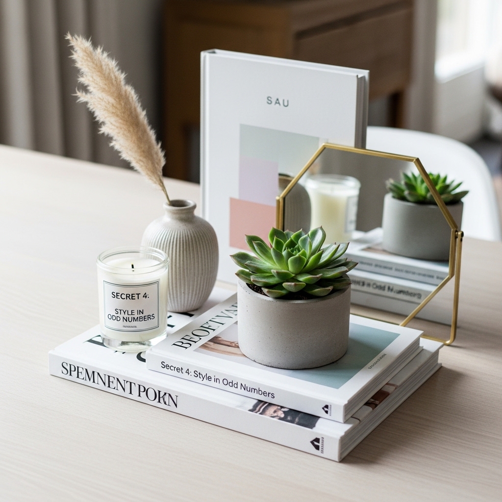 Why it works: Odd numbers create visual rhythm. Even numbers feel static. Three items move the eye through the frame.