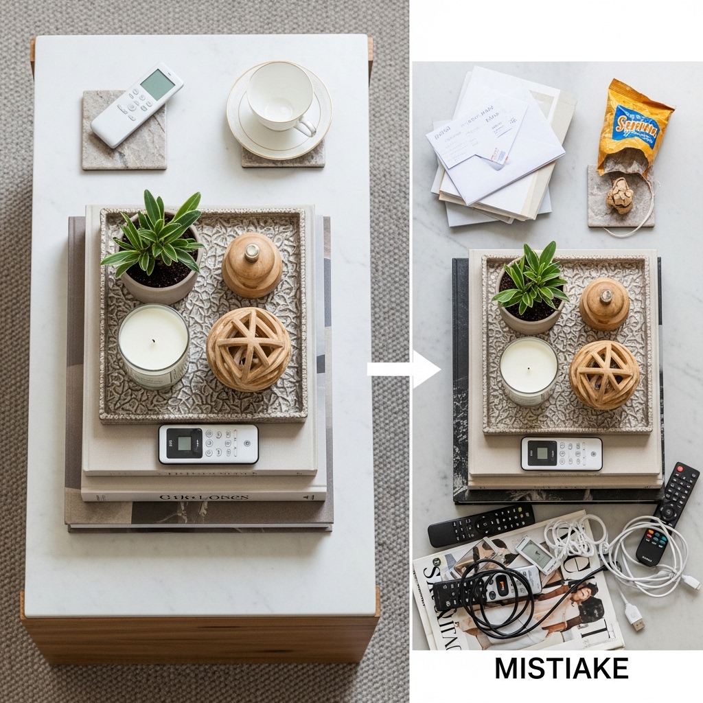 Pro Tip: Take a photo of your styled coffee table. Photos reveal imbalances that your eyes miss.