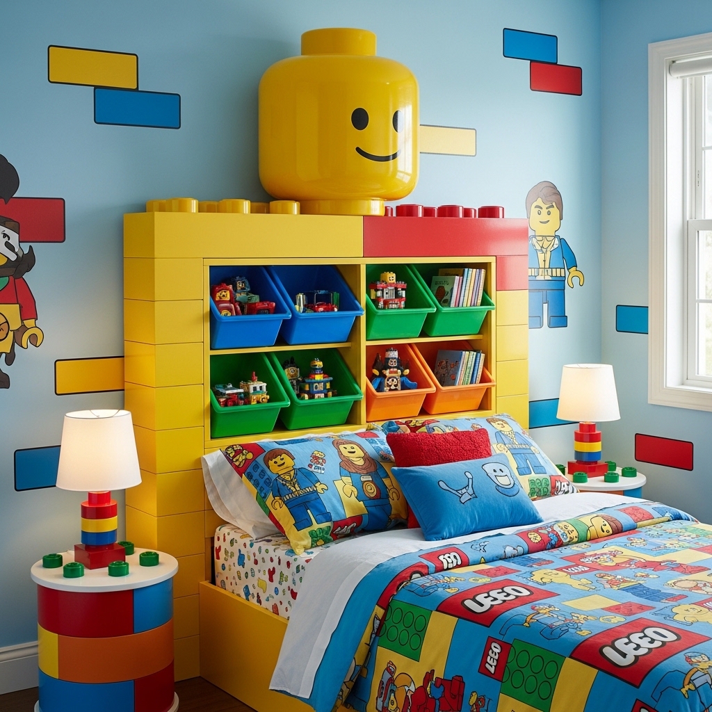 A standard headboard is decorative only. A Lego headboard stores hundreds of bricks within arm’s reach of sleep.