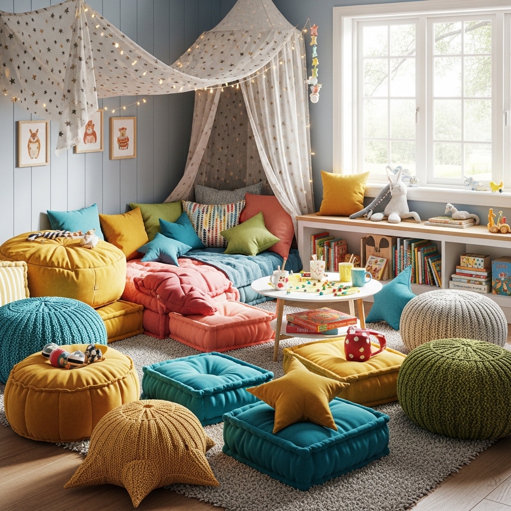 Spread cushions on the floor for reading, playing, or having friends over. Cushions adapt to any situation.