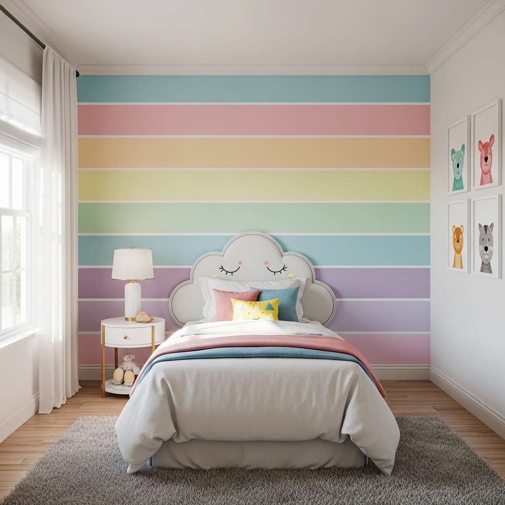 Paint a rainbow stripe wall in pastel colors. Create a homework station with a fold-down desk.