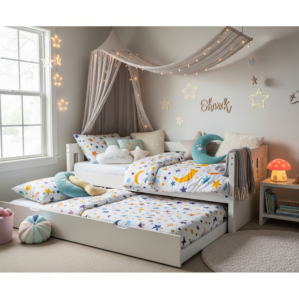 Apply this method when two children share a room or one child wants a sleepover-ready space.