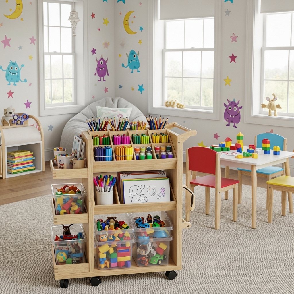 13. Use a Rolling Cart for Art Supplies and Toys