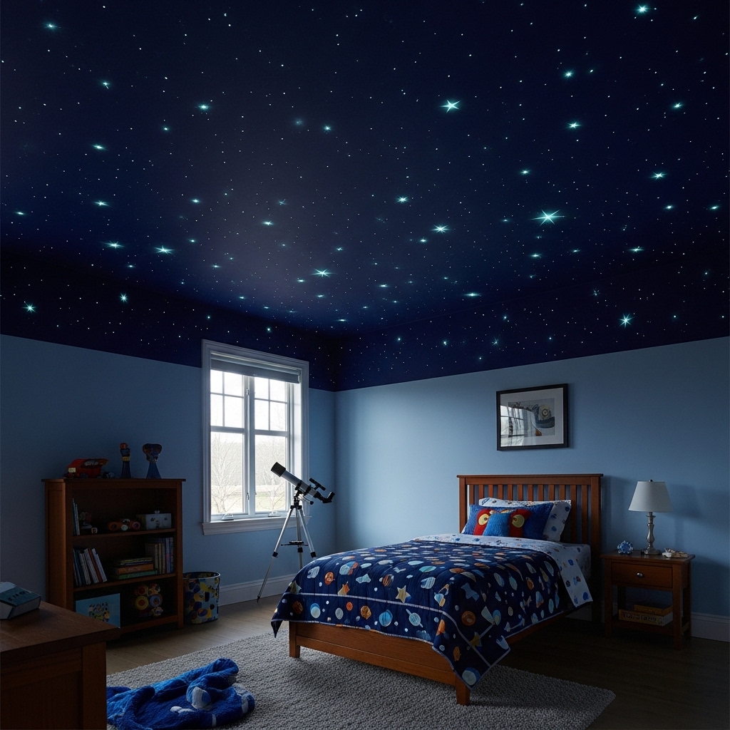 Your child falls asleep watching the stars glow softly overhead. The ceiling becomes a comfort object.