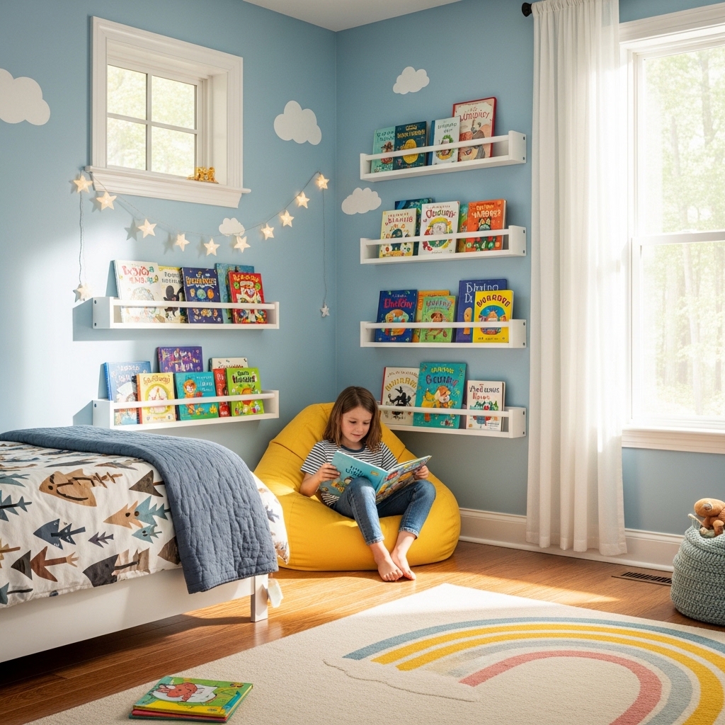 5. Install Wall-Mounted Bookshelves at Child Height