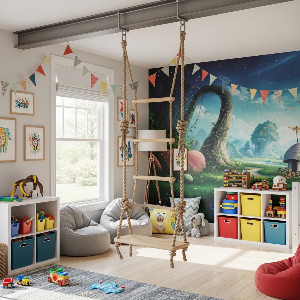 Mistake to Avoid: Do not install a rope swing above hard flooring. Thick foam mats underneath are absolutely essential.