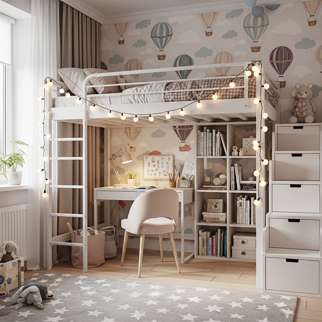 Pro Tip: Install a motion-sensor light under the loft bed. Your child can find their way to the play area at night without turning on bright overhead lights.